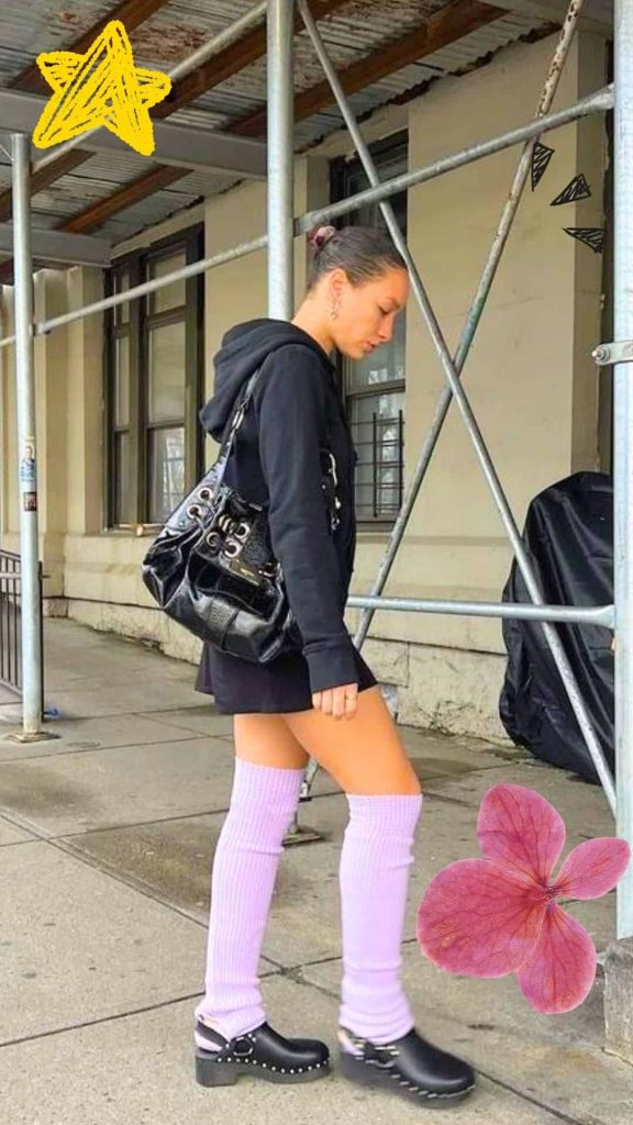 - Wear clogs with socks for warm cozy vibes