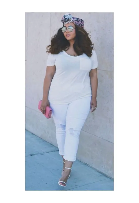 This lady is doing a good job in taking this easy-breezy appeal to the next level by adding a colorful headscarf and Barbie pink clutch.